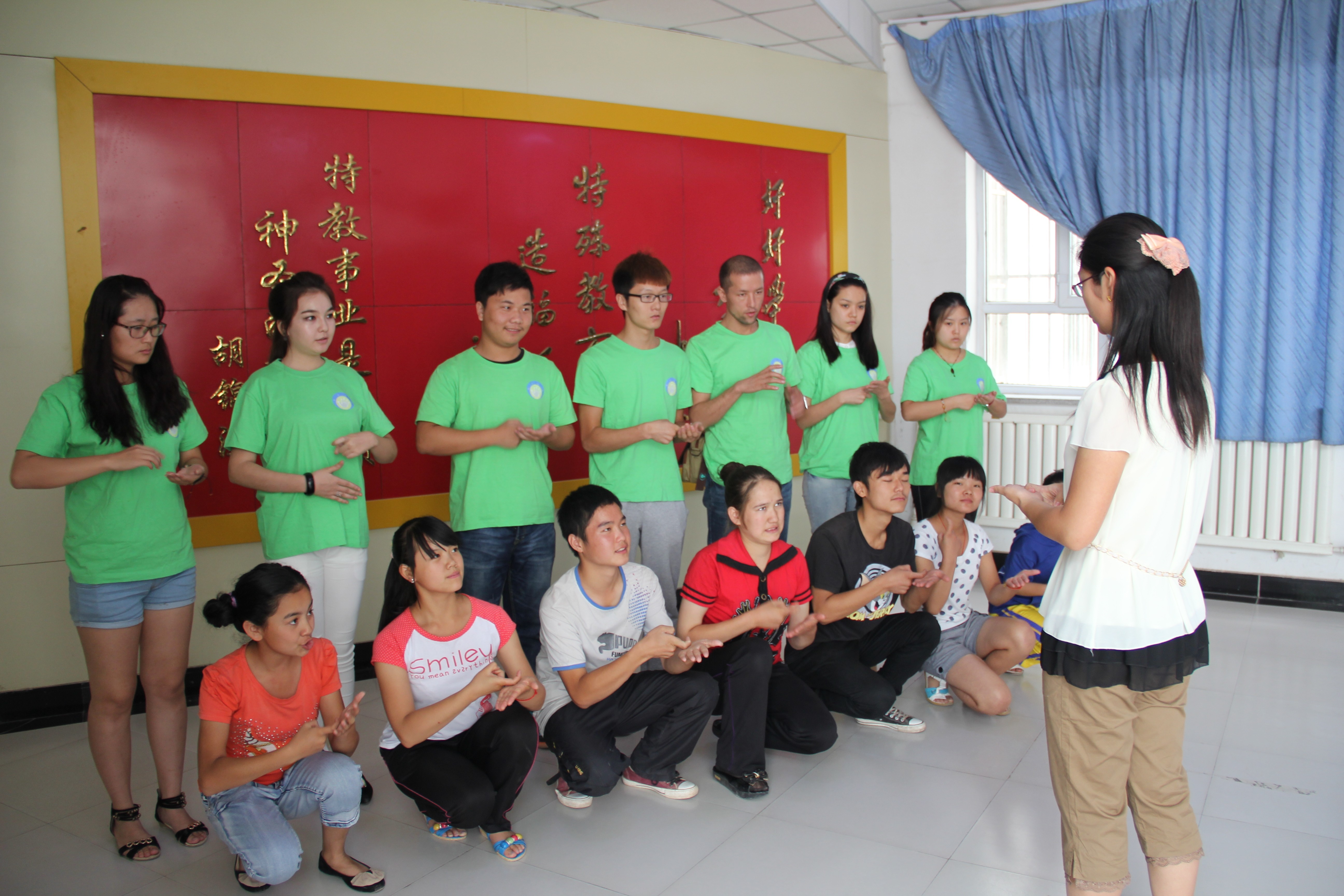 孩子们和成员们的感情越来越亲切了,所以,孩子们上课的时候不再那么拘谨了,变得活泼开朗起来,嬉戏玩闹的孩子本性在我们面前展现。成员们也没有了当初的紧张,变得从容面对孩子们的各种问题。课间,孩子们和成员们玩的煞是开心,在游戏中学习数学,在学习中体验快乐,孩子们和成员的关系越来越融洽,学习起来也很容易,而实践队的成员们也不忘增进自己的手语能力,方便和孩子们更好的沟通,彼此相互学习,共同进步。孩子们认真学习的态度总是感染打动着全体实践队的成员们,他们不会因为自己的某些能力的欠缺而有所畏惧,他们直视自己的问题,不自卑,开心乐观的人生态度更是值得大家学习的精神。
