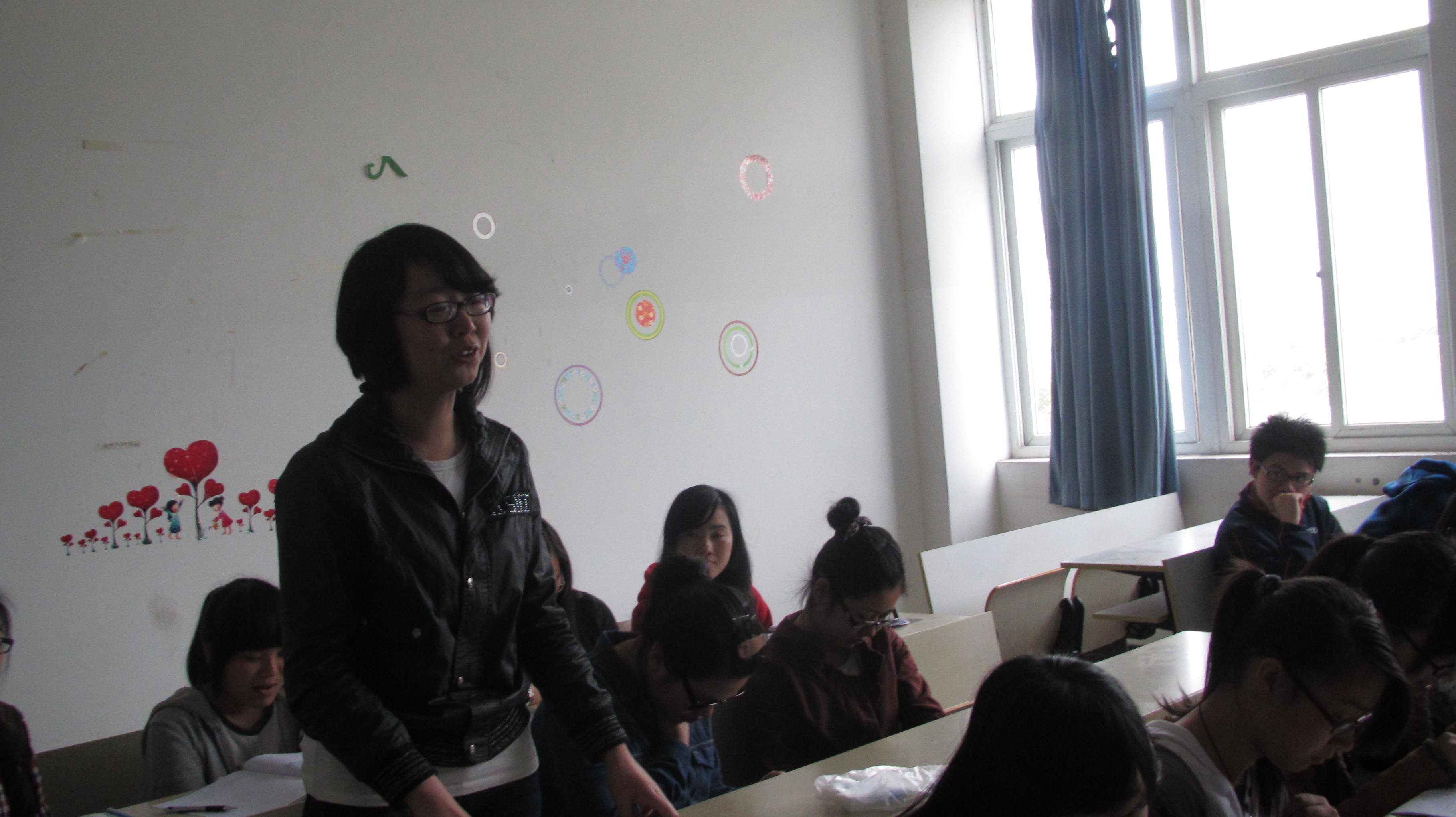 在交流活动的第一个阶段,我班三个见习点的代表发表自己这段时间的见习感想。首先,瓦市小学见习点的代表张子蔚和赵梦情同学分别介绍了小学科学的现状和瓦市小学的一些情况。而百里路小学见习点的代表郑贤文同学专门针对调皮学生的教育和管理提出了自己的感想;陈晓飞同学与大家分享了对见习班级指导老师的访谈成果,提出我们要做学生的良师益友的想法,很有见地。王华生、施星杯、谢翔三位同学分别代表南浦小学东、南、西三个校区,他们都把自己在见习过程中的精华部分提炼出来与大家分享,大家也都很有共鸣。