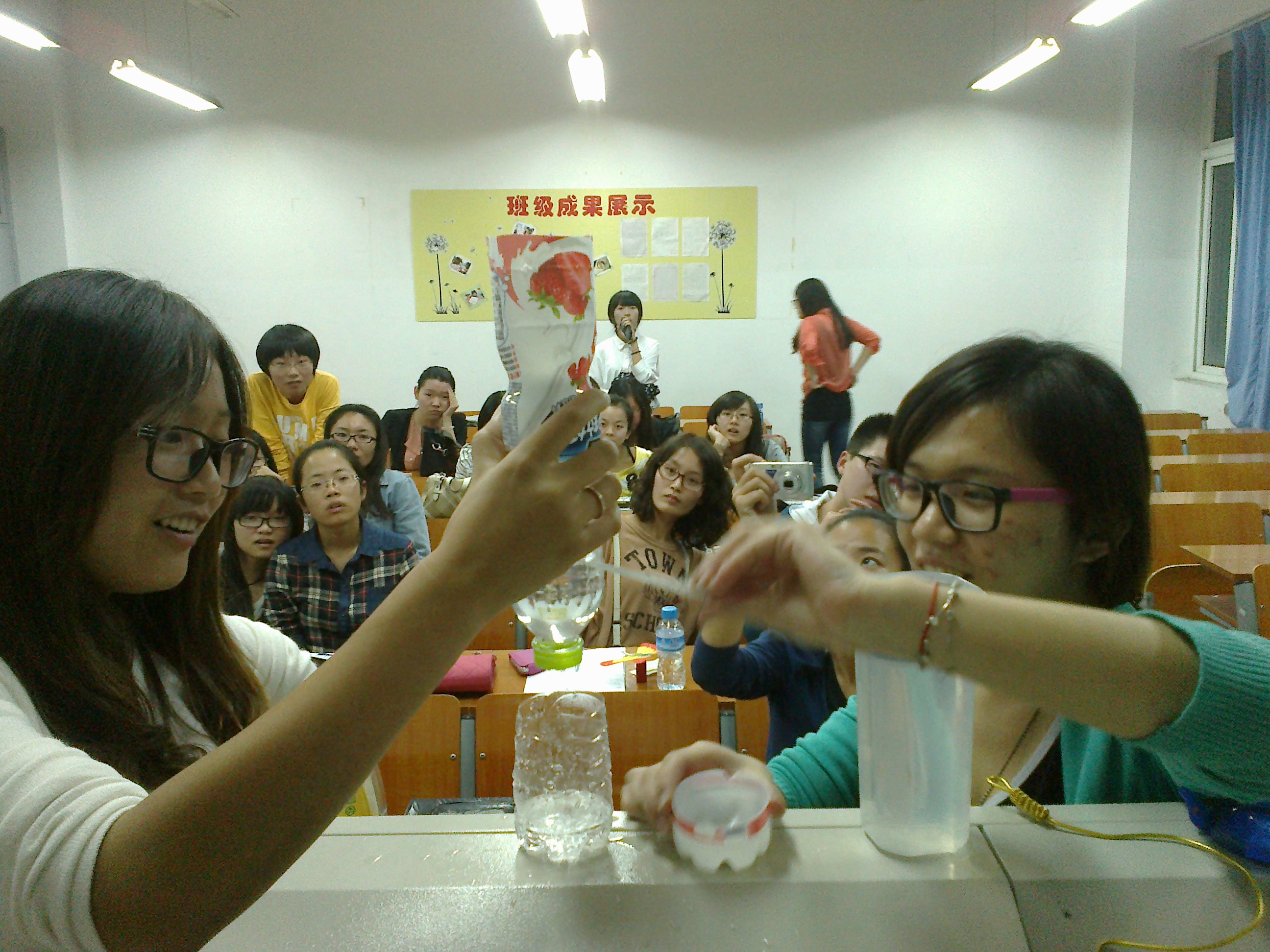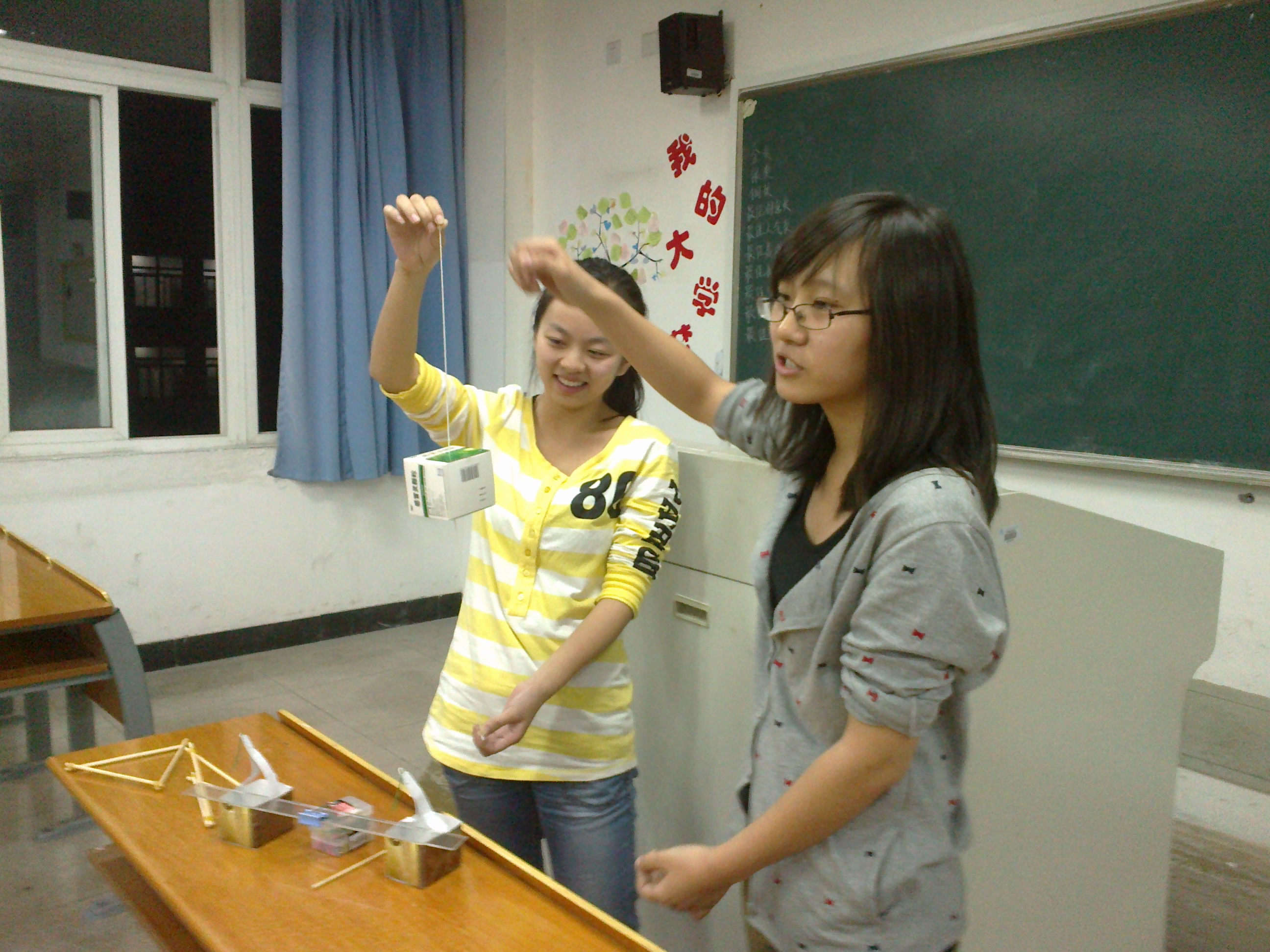 403教室内灯火通明,10小教科学班的全体学生聚集在这里,举办教具制作大赛。