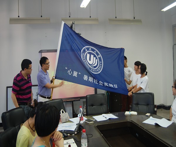 据悉,该实践队入选全国大学生社会实践公益团队前50强,并于7月6日举行了出征仪式。与会的领导有学院书记蔡联群、副院长胡瑜,及教学科章圆圆、学生科陈秀雅、严晓秋老师,实践队员近20人,在出征仪式上蔡书记提出殷切的希望和要求:第一,他向队员们强调组织纪律性,实践安全性问题,建议队员每日进行梳理交流。第二,扎实做好各自的工作,在队伍入选全国大学生社会实践公益团队的良好基础上,突出亮点,提升内涵。第三,借助微博、网站等媒体加强宣传,如队徽、队旗的设计理念,团队风采等。