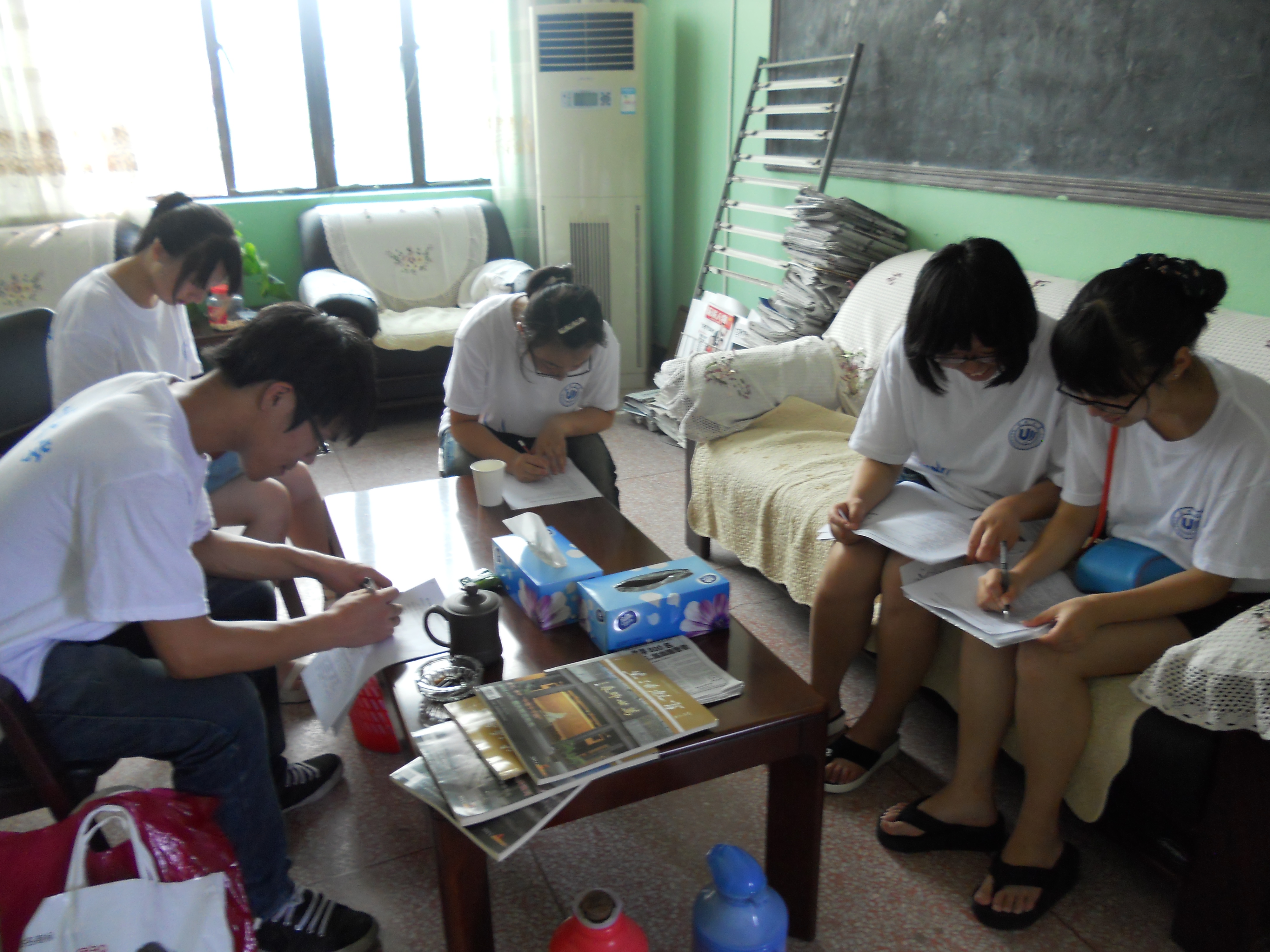 “科学之翼”暑期社会实践队金华分队开始实践的第一天,这一天我们主要所做的工作就是进行小组讨论,分配任务,安排工作,确定目标。