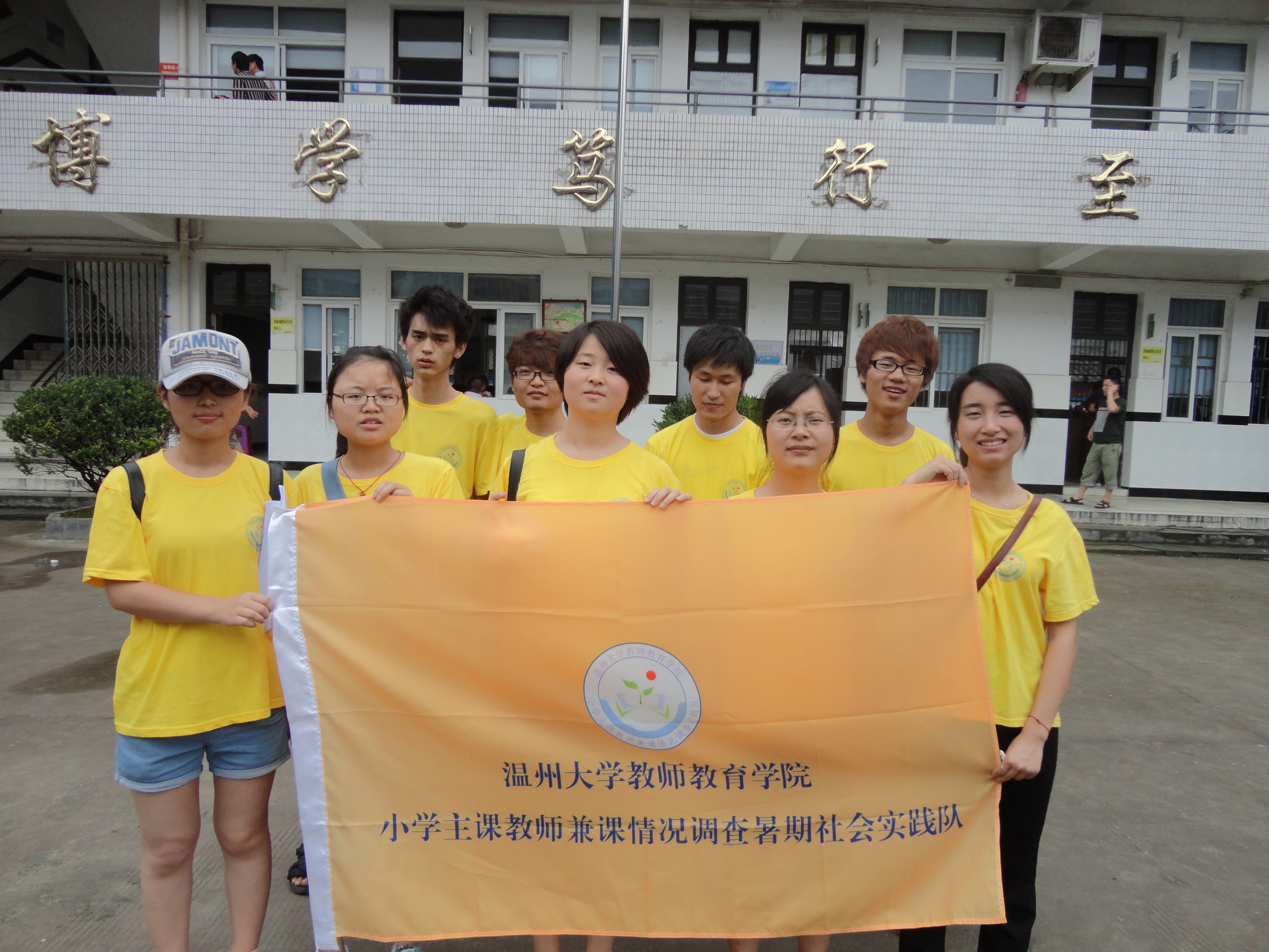6月29日,今天是小学生们回校拿成绩单的日子,我们实践队一行同意穿着亮黄色的队服齐齐来到了我们的实践基地南白象鹅湖小学,进行暑期社会实践的问卷调查。