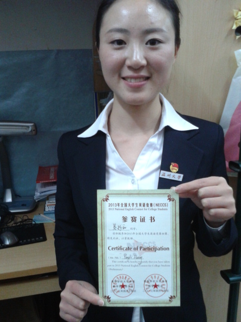 同月14日,是本届全国大学生英语竞赛开考之日,12教技9名考生步入试场,经过一场无声的激烈的角逐,最终获得荣誉的有4名之多。这四位同学对待英语学习的态度都十分严谨,并且坚持“学习英语就是一个慢慢积累的过程”。从她们平时的学习态度与性格就不难看出,她们对语言有一定的天赋并付出别人不曾付出的时间与精力。同时她们一致强调“兴趣是学习语言的最大动力”,唯有喜欢,才能学得欢喜!
