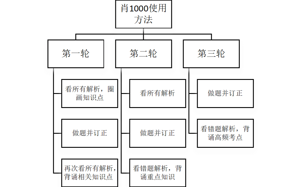 第二轮:在对知识点有一定了解的基础上,第二轮的做题节奏和方式可以做一些调整。题量可以按照“章”来进行,但还是要根据具体情况而定;做题方式与第一轮不同,可以在做题之前看一遍解析,校对之后只看错题和你第一轮复习时圈画的重点。