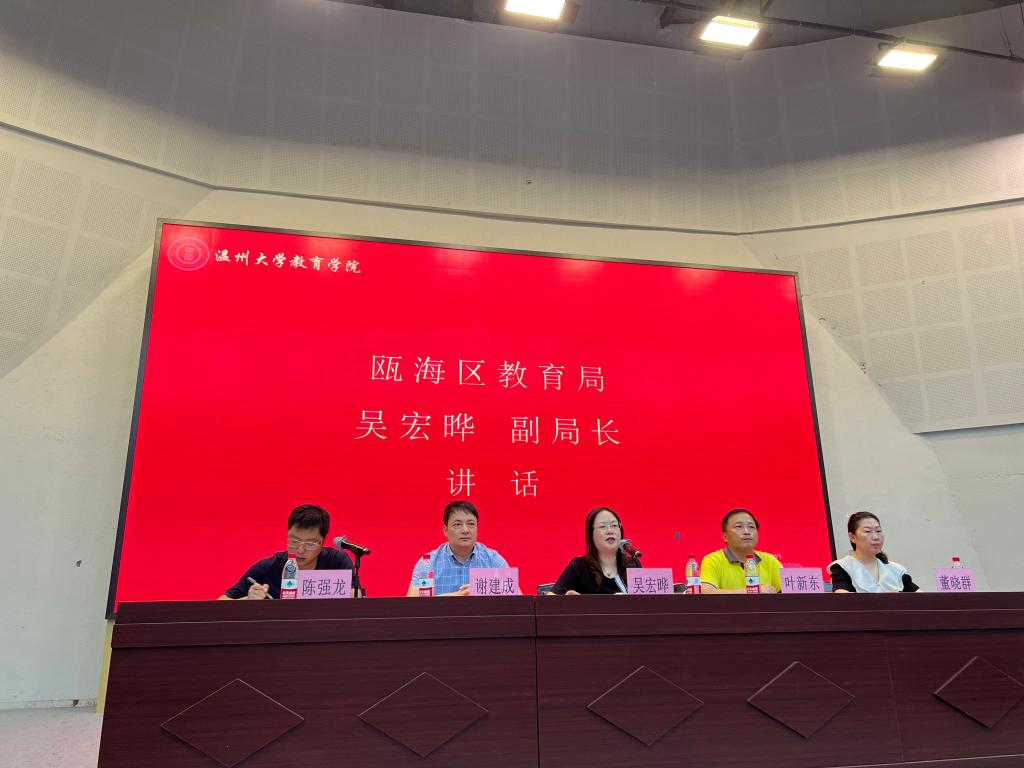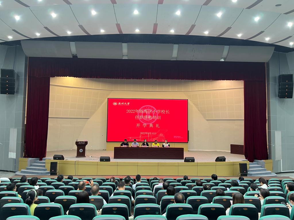 2022年8月16日上午,2022年瓯海区小学校长任职资格培训在91吃瓜 举行开学典礼。瓯海区教育局党委委员,副局长吴宏晔、瓯海区教育局组织人事科长谢建成、瓯海区教育研究院副院长董晓群、91吃瓜 副院长叶新东以及来自瓯海区的54名校长及后备干部参加了此次典礼。典礼由91吃瓜 培训中心主任陈强龙主持。