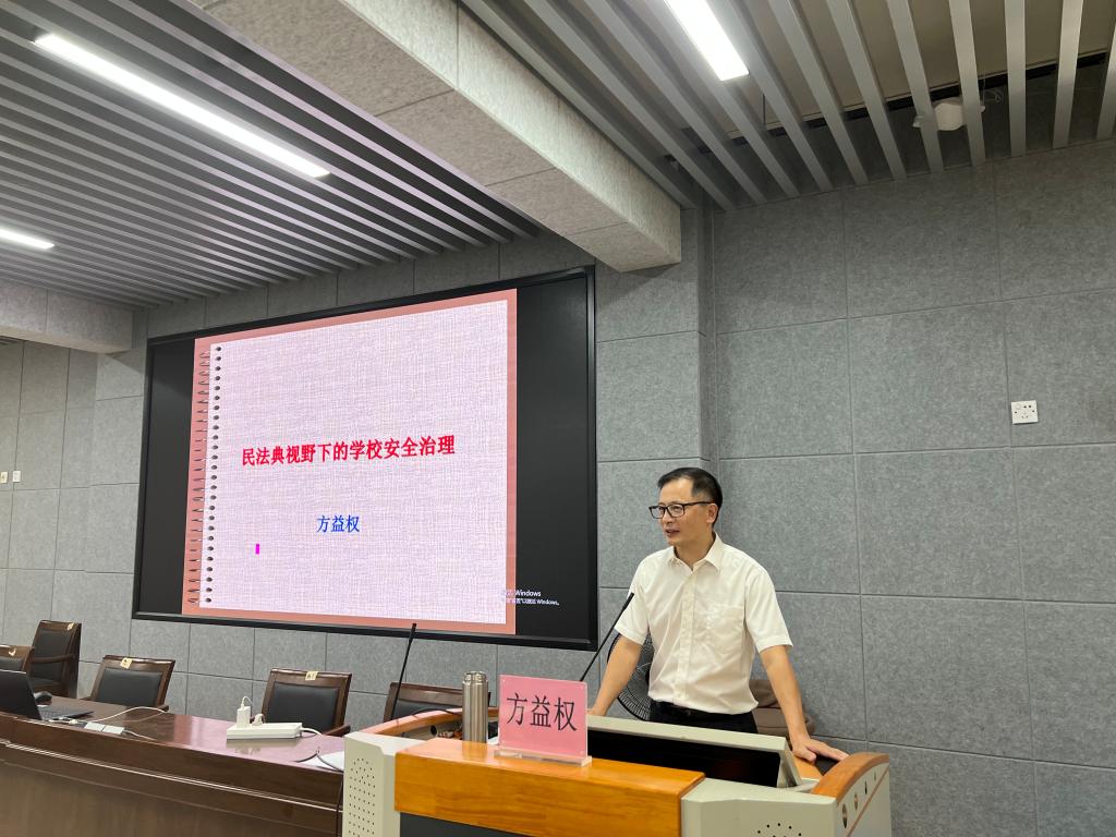 2022年8月17日下午,温州职业技术学院院长方益权教授在学校法制与危机应对这个模块,给大家针对《学生意外伤害事件的处理》专题进行梳理。方教授从全员增强校园安全意识;如何区分教育惩戒和体罚、变相体罚;校园安全事故中学校法律责任的界定;科学应对、合理处置校园安全事故等四个方面讲授学校安全治理。重点解读了校园安全事故中学校法律责任的界定,他据经引典解读了民法典在解决校园安全事故中的经典案例。结合自身多年经历的案例,指引我们如何科学应对、合理处置校园安全事故、开展学校安全治理,让大家深感受用!