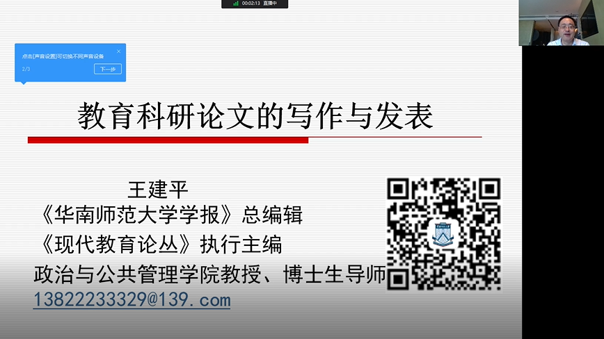 2022年8月20日上午,华南师范大学王建平教授就《教育科研论文写作指导》给予各位及是学校管理者,又是学校一线教师的各位学员老师在教育科研论文方面,尤其是选题、结构、学术规范、投稿几个关键环节做了深入的交流,课程后老师们也表示,一定要将教研与教学结合,深入学习,不断发展!在班级委员的组织下,各位学员各自分组线上开展了论文学习与交流活动。