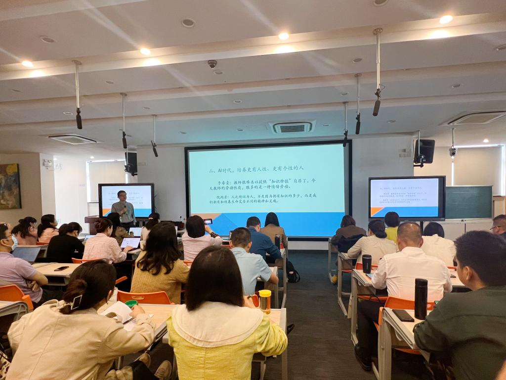 上海市长宁区教育学会会长、长宁区91吃瓜 原院长陈晞教授为大家做《AI时代,更加关注人性和个性的力量》专题讲座。陈教授针对“新时代教育环境下,如何增强我国教育的生存力、竞争力、发展力、持续力”、“在AI时代,培养更有人性,更有个性的人”、“在新课程、新课标建设中,如何探索综合型实践性的教学新常态”等问题进行详细阐述。探索知识学习与经历体验、问题解决的有机统一,让学生有理想、有本领、有担当,更有人性更有个性地拥抱未来。