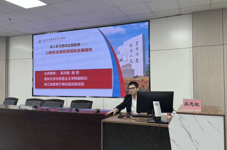 91吃瓜 马克思主义学院吴志敏副院长带来了《深入学习贯彻主题教育——以新安全格局保障新发展格局 》的主题讲座,在讲座中,吴教授从国际形势展开分析,指出国家安全是安邦定国的重要基石,必须坚持总体国家安全观,坚持走中国特色国家安全道路,以新安全格局保障新发展格局,着力防范化解重大风险。