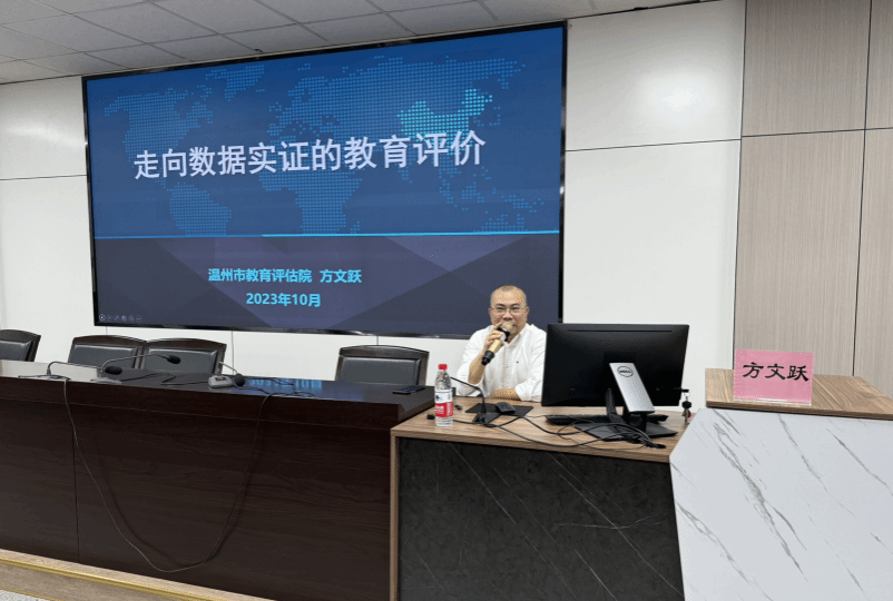 温州教育评估院方文跃院长为学员们讲授了《走向数据实证的教育评价》主题讲座。在讲座中,方院长从评价的概念和相关政策介绍开始,分析了当前教育评价出现的“五唯”问题,指出评价是影响学业成就的最重要的因素,需进行评价理念转型,方院长运用大量的数据图表从学生层面分析学习动力、减负提质、学习品质、抗逆等方面存在问题,为教师、学校和家庭提出切实的解决方向和测量。