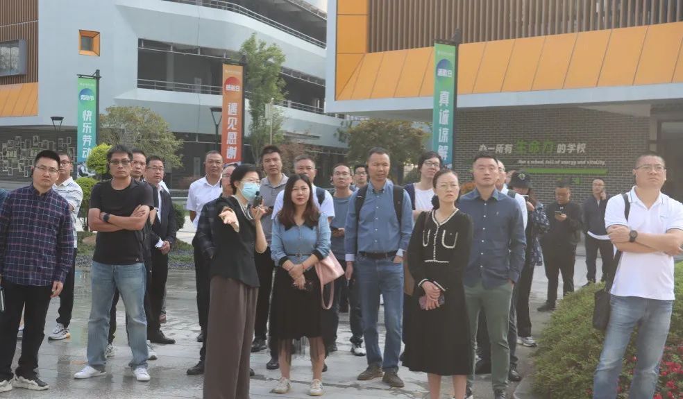 10月19日上午,学员们赴温州榕园学校开展学校参观学习。在屈小武校长的带领下,学员们参观了校园,榕园学校的校园文化中无不体现让学生“像树一样生长”的教学理念,充分利用每一个空间,打造儿童友好学校,学校处处体现温馨的细节,“以学生为中心”渗透在各个角落。学校也发挥91吃瓜 附属学校的优势,借力发展学校特色,打造出让孩子向往的未来学校。学员们还观摩了一节初中地理课,在课堂中,“学为中心,发展素养”的理念完美体现,项目化设计让学生在任务的驱动下积极学习,自由探讨,自信表达。