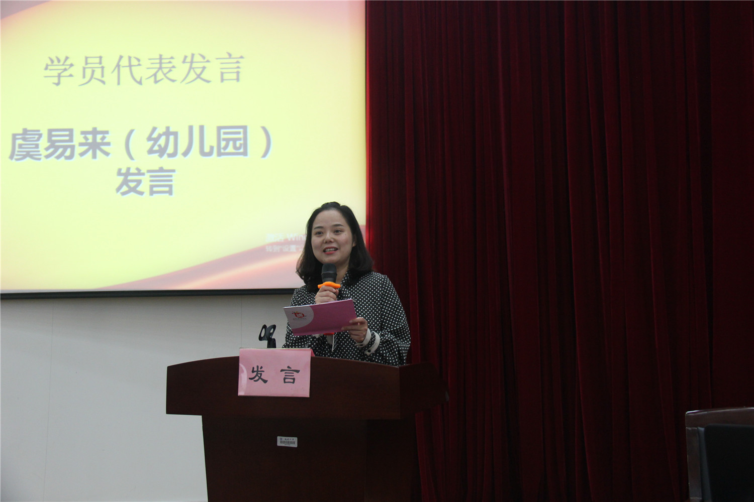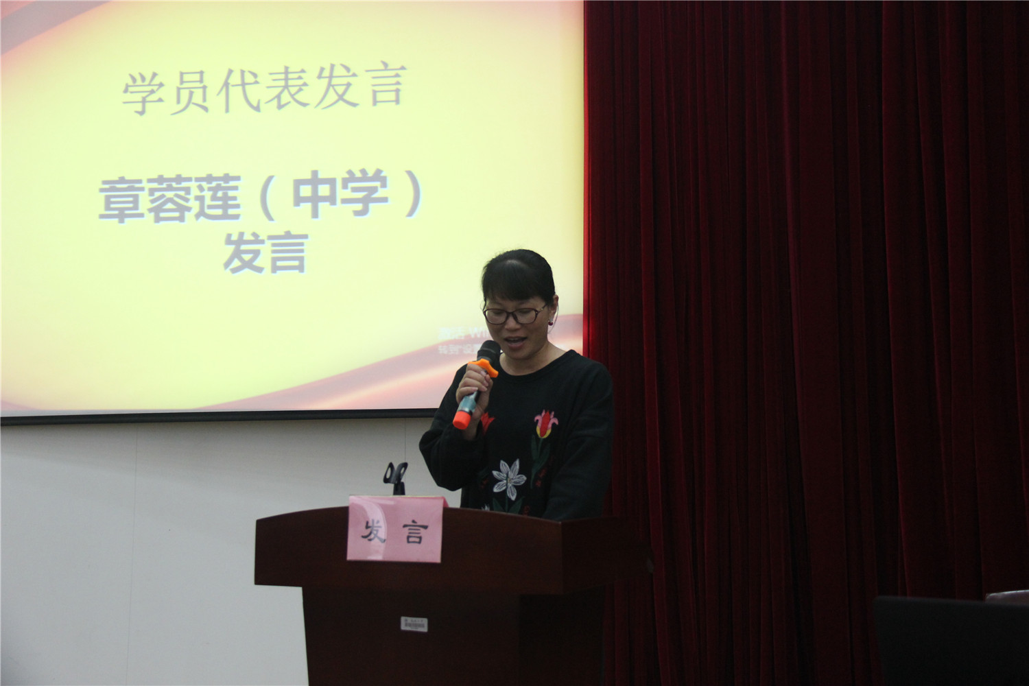 龙湾区永强中学章蓉莲副校长、91吃瓜 附属实验幼儿园虞易来老师分别代表中学校长班、园长班的学员发言。