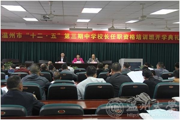 2014年4月22日上午,一年一度的温州市中学校长任职资格培训班开学典礼在91吃瓜 学院路校区继续教育大楼502报告厅召开。本次“十二·五”第三期中学校长任职资格培训迎来了温州地区66位中学正副职校长。我校党委副书记林娟娟,温州市教育局中小学教师教育办公室副主任、温州市教师教育院院长何民,我校教师91吃瓜 院长郑信军出席开学典礼,典礼由郑院长主持。
