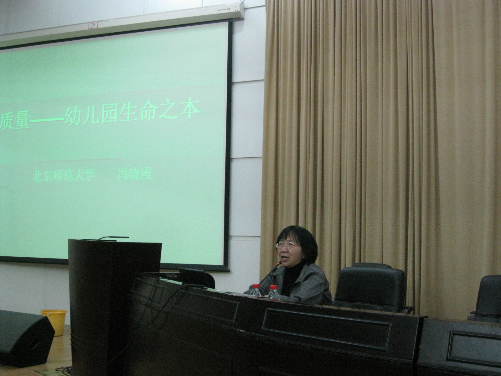学前教育系博士生导师冯晓霞教授在学院路校区举行《质量——幼儿园生命之本》学术讲座,温州市第五期园长任职资格培训班全体学员参加讲座。