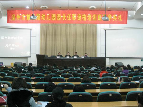 典礼在热烈的掌声中结束,培训班将于1月29日下午正式上课。幼儿园园长任职资格培训,在我校历时多年,一直受到全校上下的重视,多年来,我们扎扎实实运用我们的资源通过培养这些“领军人物”为幼儿教育服务,多年后,我们希望我们的工作能为温州的幼儿教育的发展做出应有的贡献!
