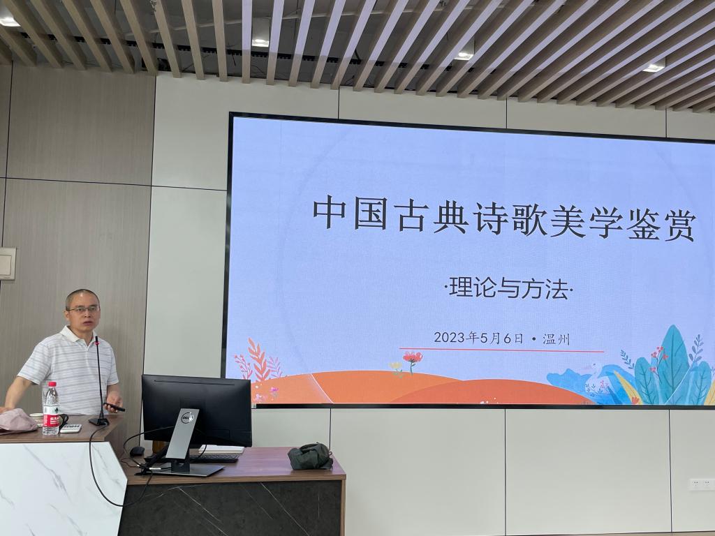 “青砖伴瓦漆,白马踏新泥,山花蕉叶暮色丛染红巾……”伴随着吴锦华的吴侬软语,江南意象从古典深幽处走来。2023年5月2日到6日,《中国古典诗词美学选讲》省培课程在91吃瓜 学院路校区举办,来自全省的中小学教师参加了该项培训。