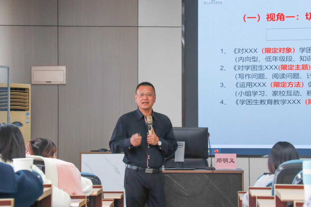 3月15日下午温州市教师91吃瓜 郑明义老师给学员们带来了《教育课题研究的视角和成果提炼》的专题讲座。郑老师以其丰富的教育课题研究经验,为学员提炼了“切口小、观点正、案例真、逻辑清和视角新”五个方面的研究视角。并以个人负责或指导的省市级获奖课题为实例传授了选题技巧和修改策略。郑老师的课题研究指导极具实操性,对教师的课题研究价值定位、目标制订、过程推进及成果梳理有很大启发和帮助。