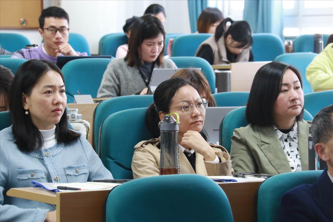 3月17日下午温州市龙湾区教师发展中心江晓静主任以《统整·重构:校本研修精品课程的精彩蝶变》为题,分享了区域性校本研修课程建设先进经验。江主任在讲座前利用“何为校本研修?”“为什么我们要做校本研修?”“我们研什么?”三个问题为开展,从校本研修的“难题”为切入口,帮助教师们重新梳理校本研修的流程。
