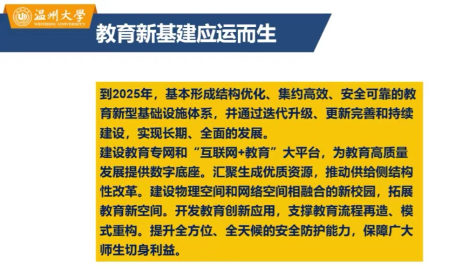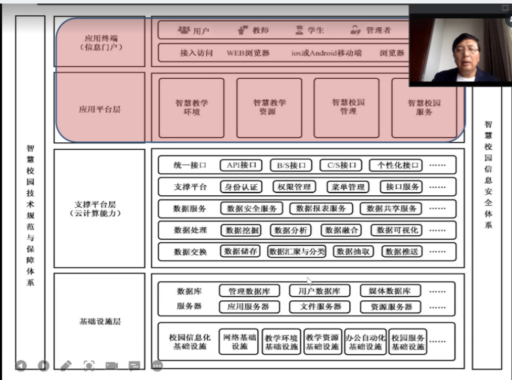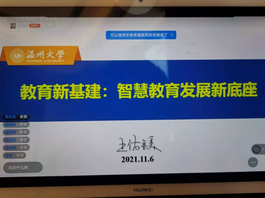 王佑镁教授通过钉钉线上直播的方式,为大家带来了《教育新基建与智慧教育应用》课程。为大家理清了智慧教育发展的脉络,以及教育新基建作为现代教育建设的保障应运而生,未来智慧教育的不断发展趋势。