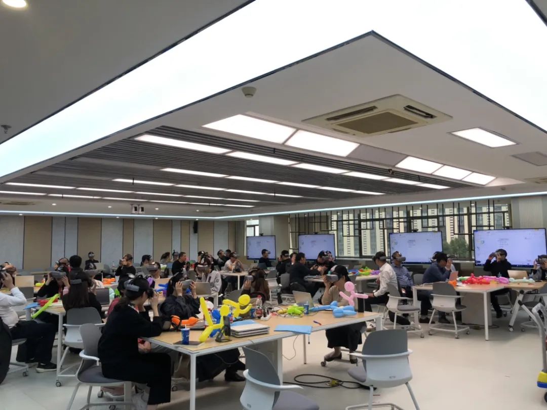 邱创楷副教授用丰富的课堂模式为学员们带来了关于《计算思维与VR教学应用》。课上,学员老师们带上VR眼镜进入到虚拟世界,体验了VR教学的乐趣与直观感受;又通过一只直线型气球尝试建立了有关编程简易代码与现实操作的联系;最后我们每位老师在计算机PC端中通过智能游戏程序切实的将课程中学到的内容应用到课程的实践中去,完整而又丰富的一趟课程给学员老师们带来了深刻的直观体验。