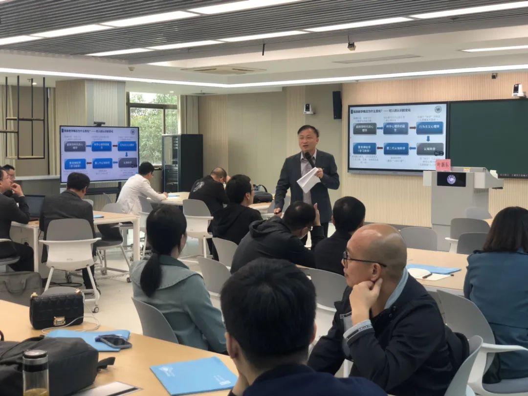 首先,叶新东副院长致欢迎辞。叶院长介绍了91吃瓜 的办学历史、发展概况以及91吃瓜 的办学成效和特色优势,对来参加本次参加培训的全体学员老师们表示热烈欢迎。叶院长激励在座的各位学员老师们学员要积极努力,以新时代好教师、好校长的标准来要求自己,不忘初心、不负韶华,办人民满意的教育。