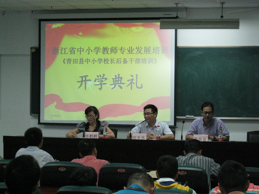 常务副院长胡来林、青田县教师进修学校校长楼春富等出席了开学典礼。继续教育科副科长林鹣鹣主持典礼。