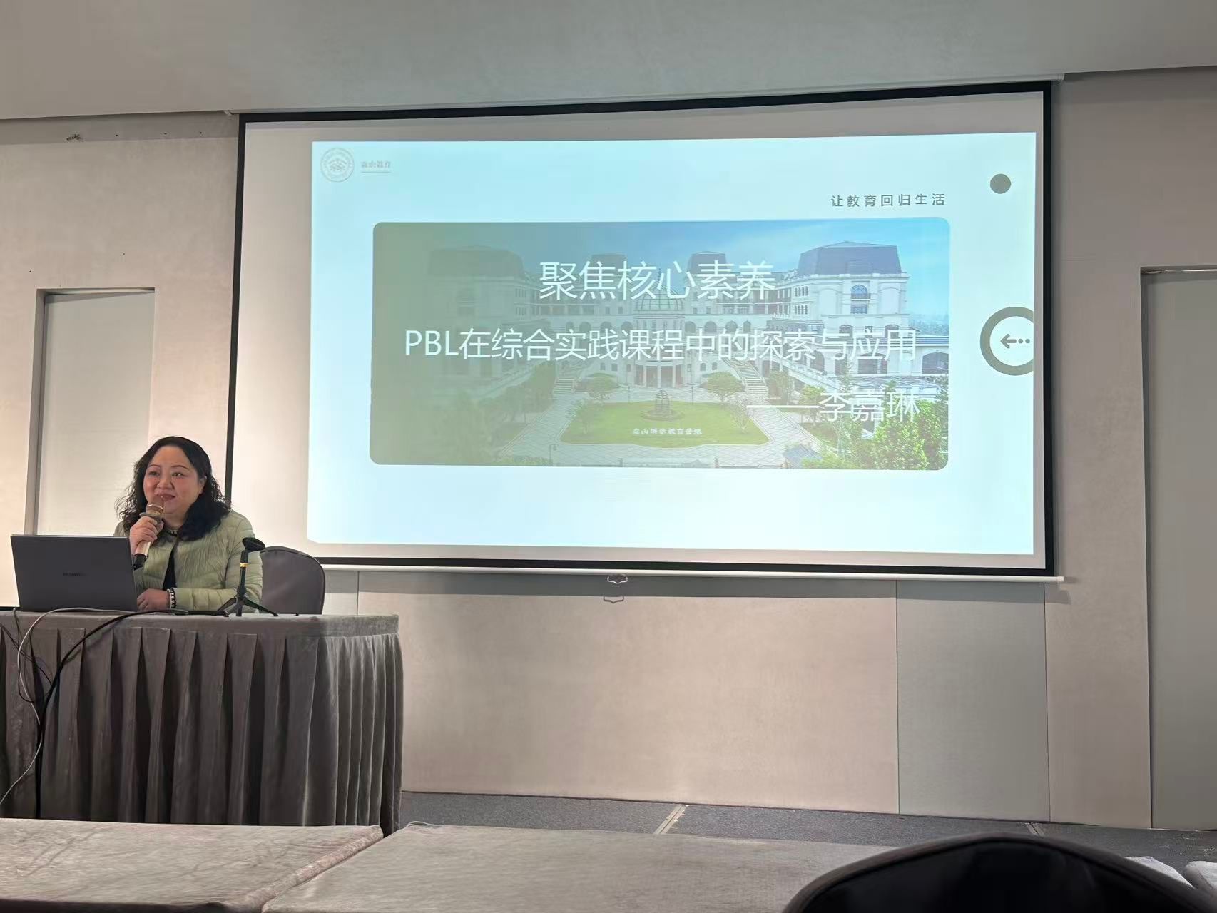 李嘉琳主任的讲座聚焦PBL(项目式学习):其以“立德树人”为目标,通过真实情境驱动问题,以“情境导入—任务建立—团队协作—成果展示—评价反思”流程落地,如仙草入人间、非遗婺彩•戏饰新声等案例所示。强调教师以观察者、引导者、资源提供者角色以驱动性问题导入,提供差异化支持,助力学生在实践中培育核心素养,推动教育系统变革。