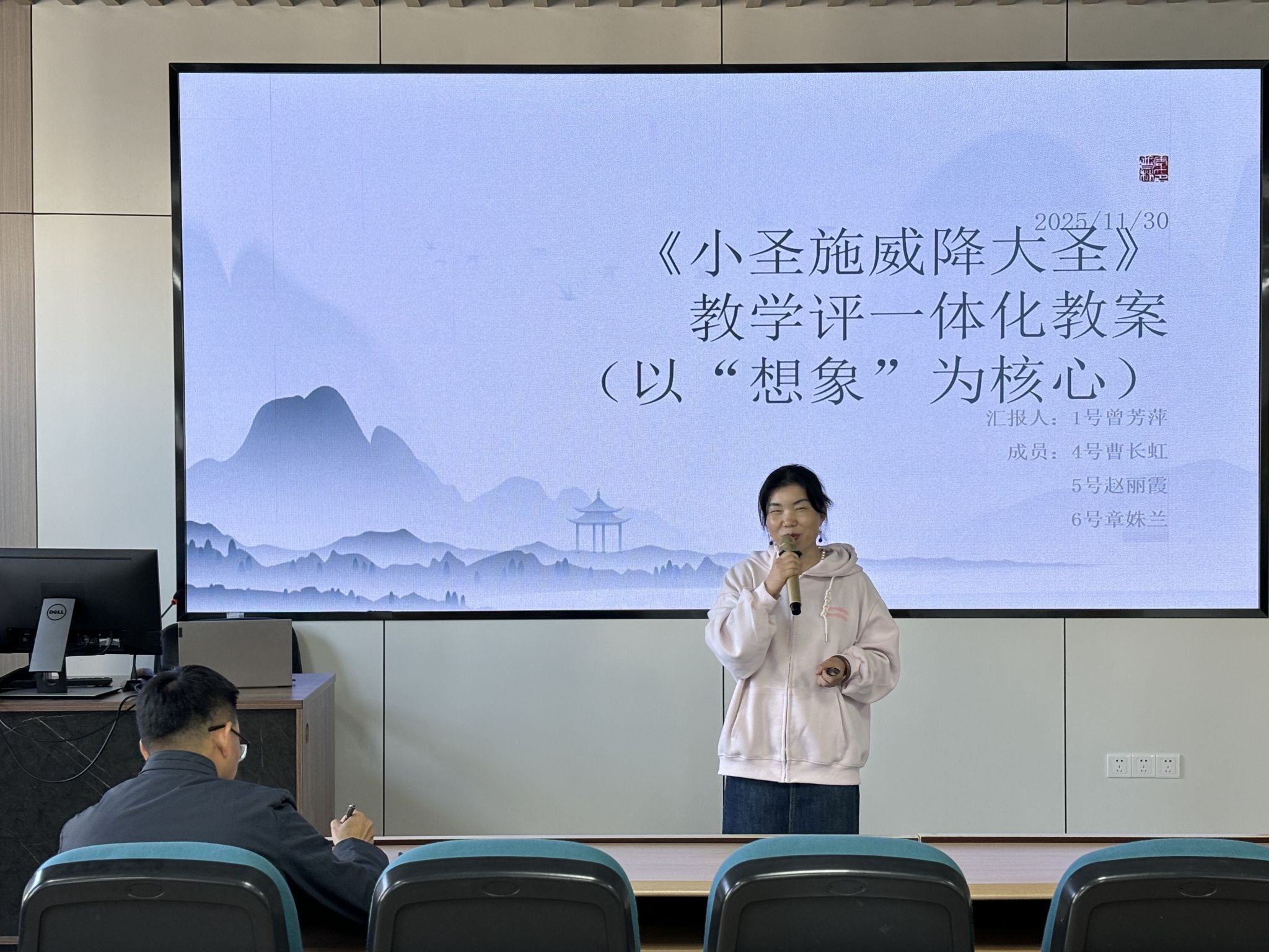 28日下午,全体参训教师前往温州市南浦实验中学锦江校区开展课堂观摩活动。刘靖靖老师带来的七年级上册语文《小圣施威降大圣》教学展示,呈现了本堂课“以文本为基、以素养为魂、以数智为翼”的教学理念。课后,老师们分组合作,就这堂课程展开了热烈讨论,深化了对语文阅读教学评一体化的认知。