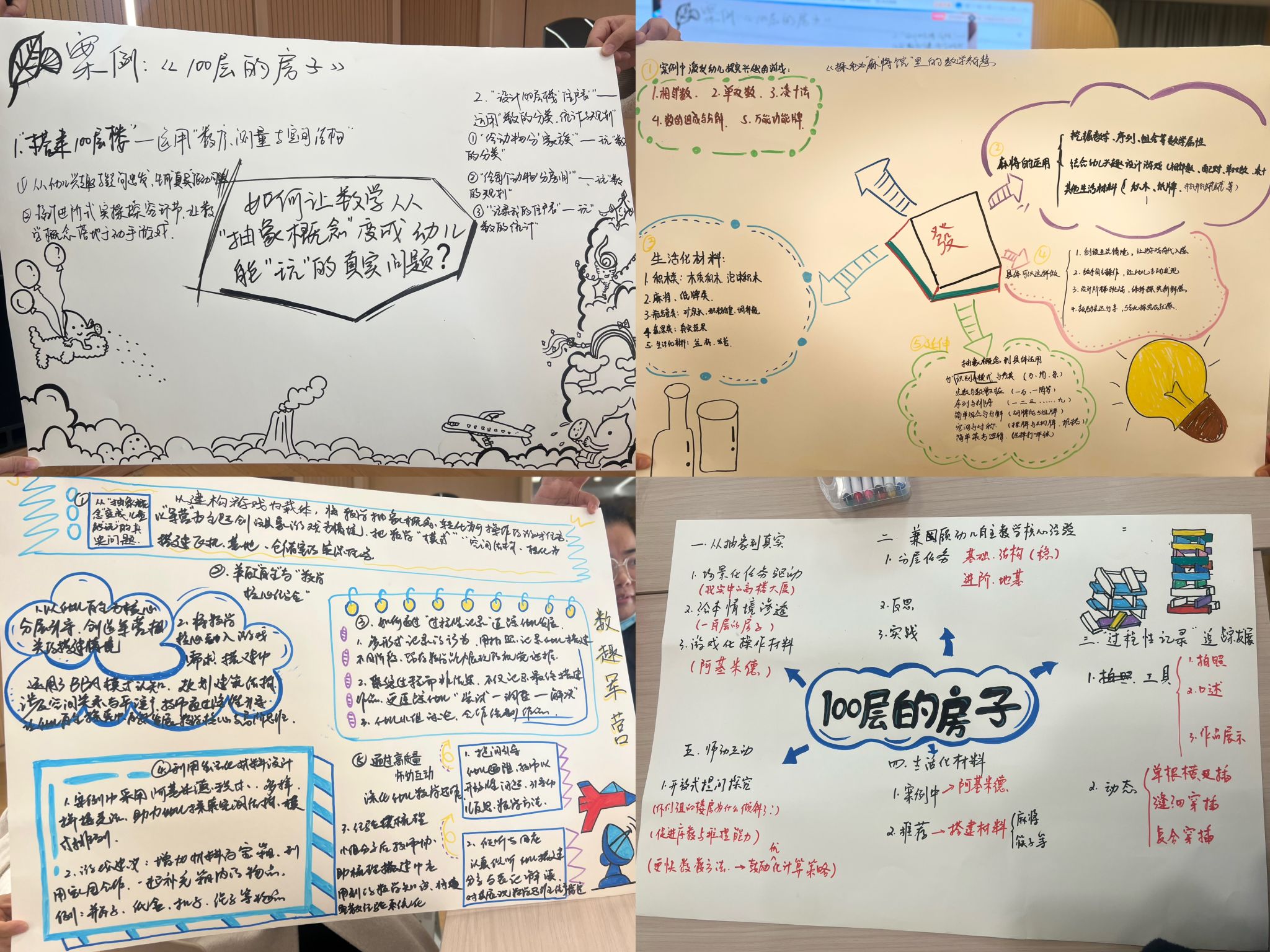 在十四幼练丽贝老师的组织下,全体学员老师分小组展开热烈讨论。学员老师们可以选择其中一个分享案例,结合自身教学实践进行讨论,就如何让数学从“抽象概念”变成幼儿能“玩”的真实问题、如何通过“高质量师幼互动”深化幼儿数学思维等话题各抒己见,在思维碰撞中梳理可迁移的教学经验。学员代表们分享研讨成果。