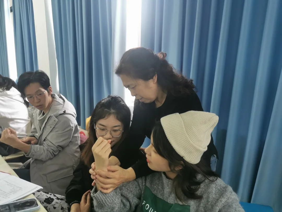 授人以鱼不如授人以渔。最后,陈文教授传授了全体教师急救止血和心肺复苏术的方法。陈文教授向新教师们分别展示了身体不同部位失血时应该采取怎样的按压止血操作,各位学员也纷纷根据指示去寻找对应的身体部位,陈文教授也走到学员身边跟学员交流,帮助一些学员纠正姿势,现场学习的氛围非常浓厚。