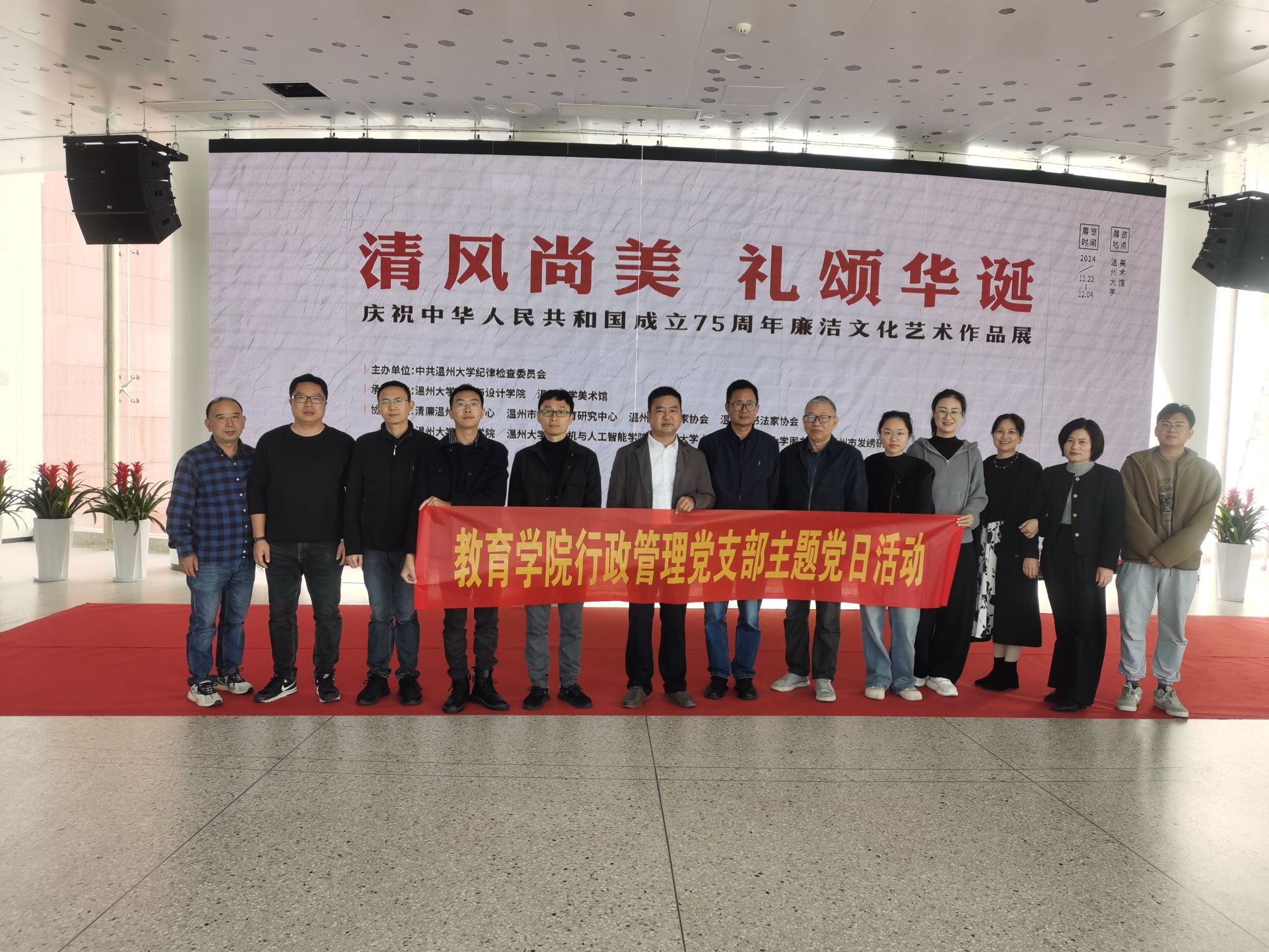 【91吃瓜 行政管理党支部】2024年11月27日,91吃瓜 行政管理党支部开展“筑牢师德底线,坚守育人初心”主题党日活动,分实地参观与理论学习环节。党员们参观91吃瓜 美术馆《清风尚美 礼颂华诞》廉洁文化艺术展,支部书记章志图介绍背景与作品意义,强调廉洁对党员的重要性。理论学习环节,大家学习《习近平法治思想是全面依法治国的根本遵循》等材料,观看中央党校副校长谢春涛的专题讲座视频,并进行思想交流。陈强龙老师、孟江龙同志、薛彬鹏同志分别分享感受,此次活动兼具廉洁与党性教育意义,激励党员加强学习,为学校和学院发展贡献力量。