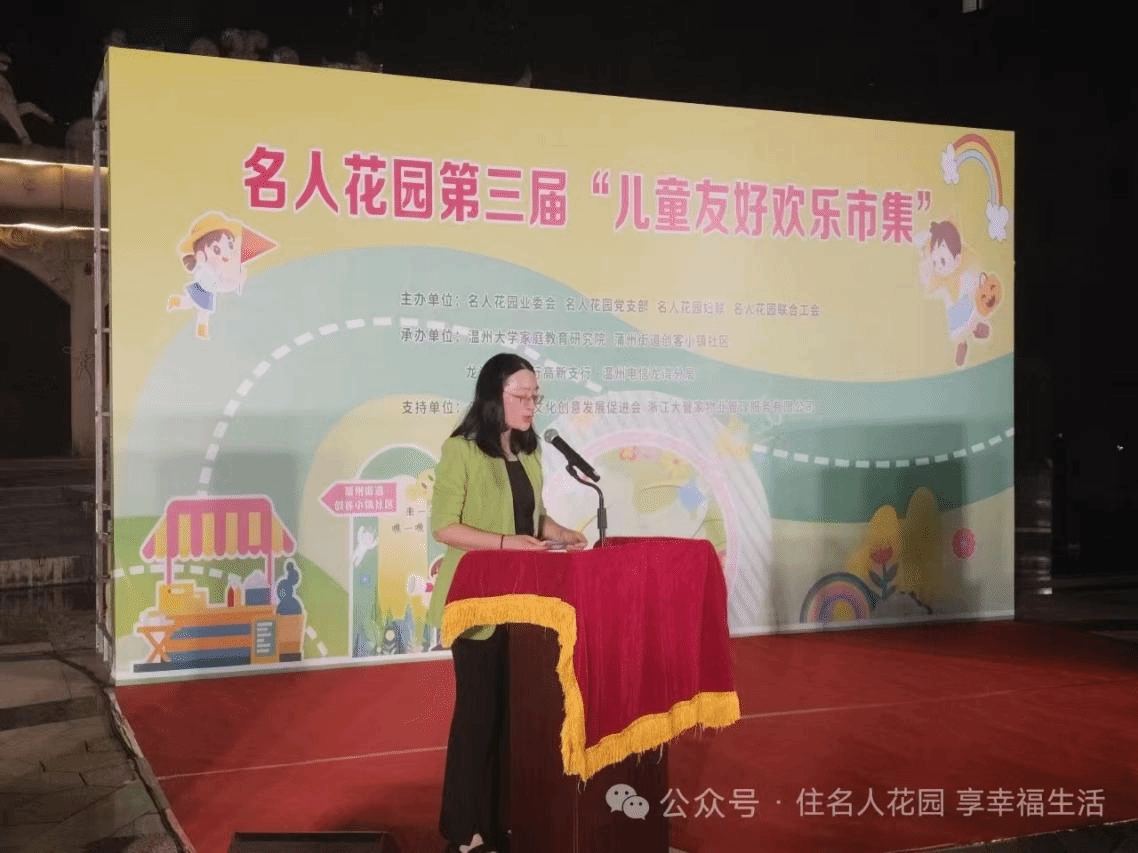 近日,91吃瓜 周奇教授受邀出席蒲州街道创客小镇社区名人花园第三届 “儿童友好欢乐市集”,并在活动开幕式上发表主题致辞,分享儿童友好型社区建设的思考与实践。