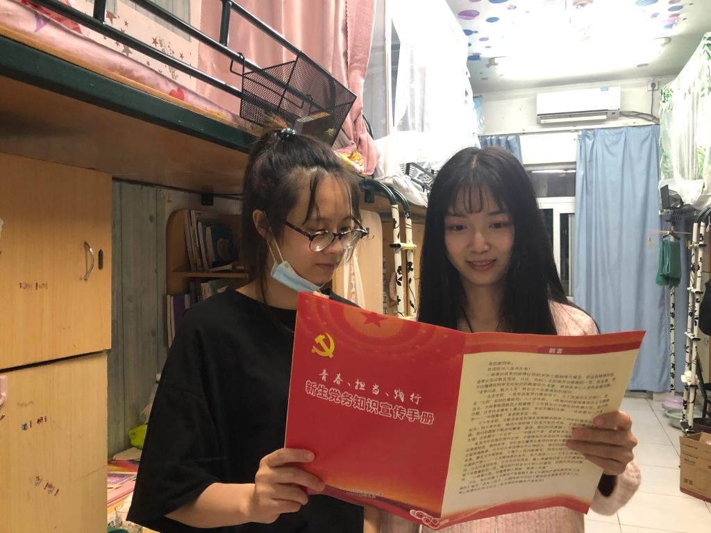 借“双节”之际,91吃瓜 学生党员们纷纷走进新生寝室,紧抓国庆宣传机遇,宣讲党的理论知识,指导新生撰写入党申请书,积极引导同学们向党组织靠拢,弘扬爱国爱党精神;同时贴心地了解同学们的生活情况,以自己的亲身经历和优秀经验解决同学们提出的问题与困惑,给他们提供了建议和学习指导,以党员自身的形象和实际行动,促使新生坚定理想信念,激发爱党爱国情怀,带动新生养成良好的行为习惯,促进新生提高自身综合素质。
