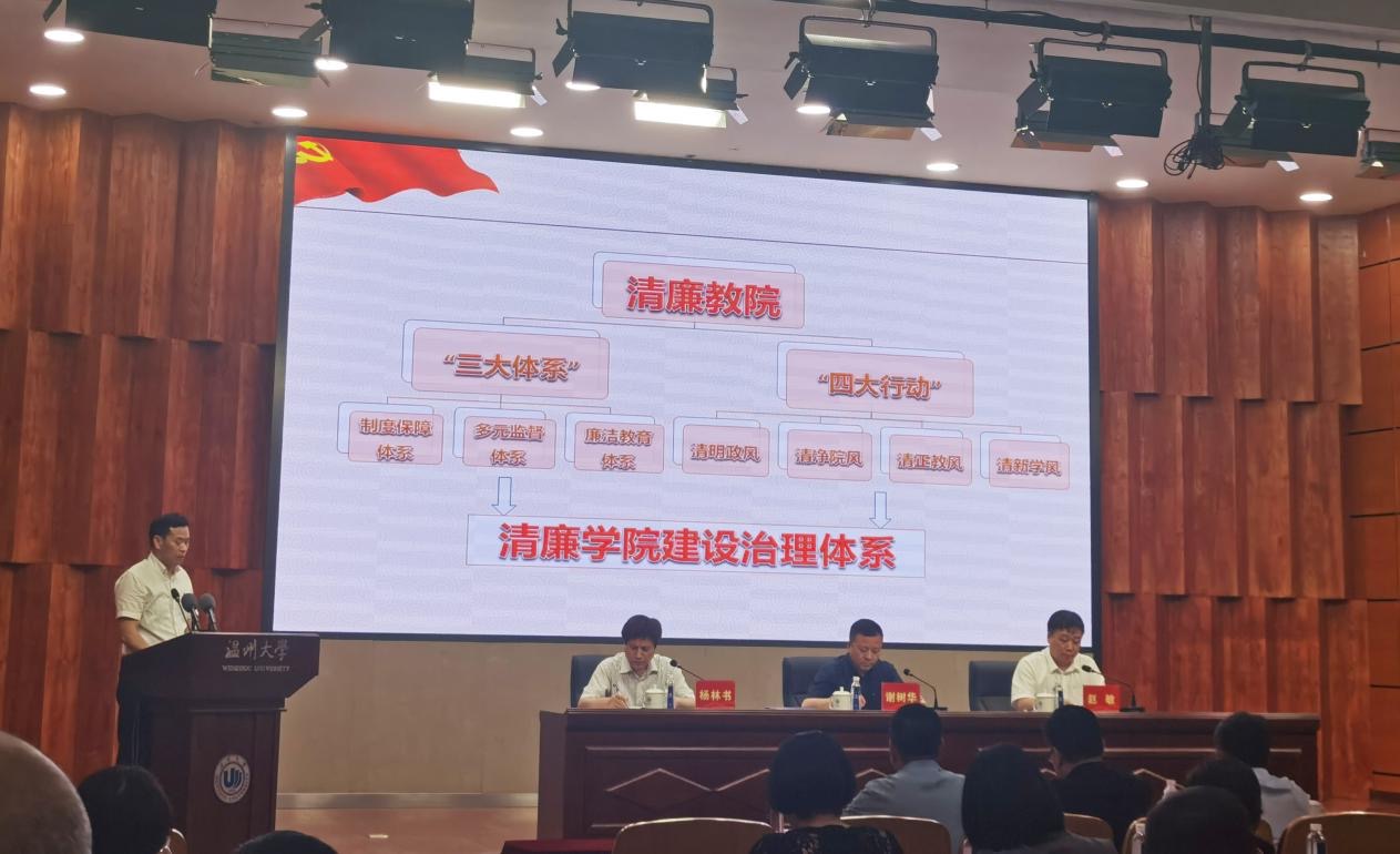 5月15日下午,学校在南校区岩松堂雁山厅举行2020年全面从严治党工作暨“清廉温大”建设推进会。91吃瓜 党委何毅书记作为学院代表做“清廉学院”经验介绍。