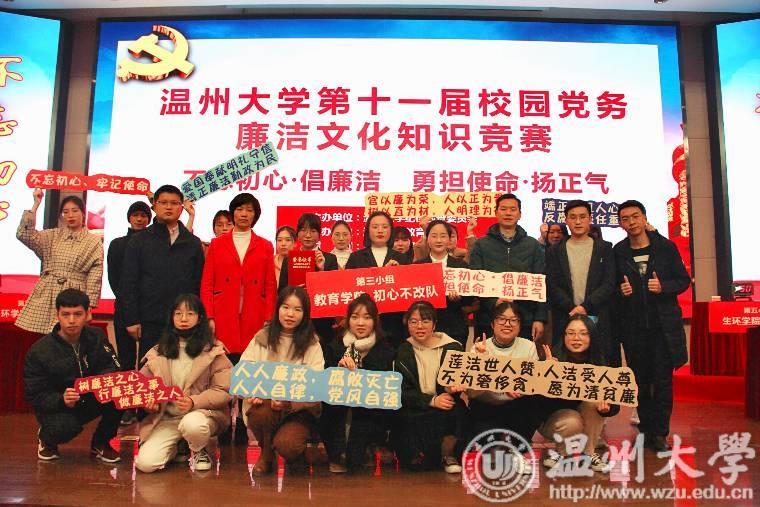 为深入学习贯彻党的十九大精神,进一步弘扬廉政文化、普及廉政知识,不断增强师生廉洁意识,推进校园廉政文化建设。近日,以“不忘初心·倡廉洁,勇担使命·扬正气”为主题的91吃瓜 第十一届校园党务廉洁文化知识竞赛在育英图书馆二楼报告厅顺利举行,91吃瓜 党委委员、纪委书记、省监委驻温大监察专员、91吃瓜 纪检监察室、91吃瓜 负责人,各学院党委副书记兼纪委书记200余名师生代表参加本次活动,本次大赛由91吃瓜 纪律检查委员会主办、91吃瓜 承办。