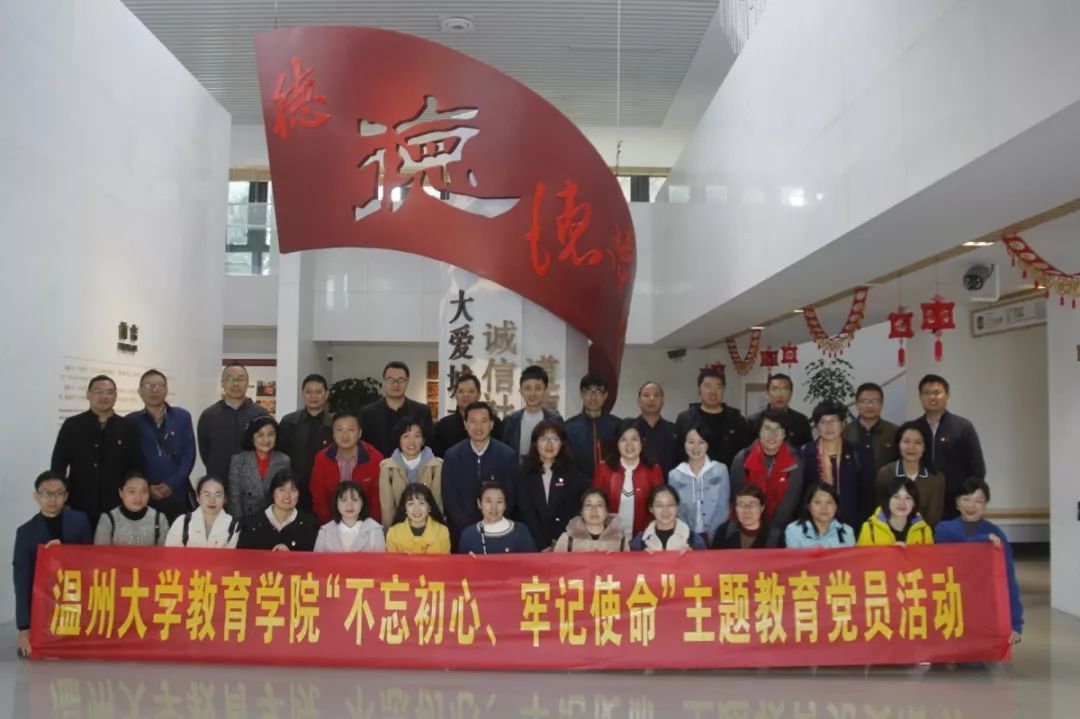 为丰富“不忘初心、牢记使命”主题教育的形式,增强主题教育的生动性、实效性,同时引导广大教师党员深入了解温州传统文化成果和现代精神文明,11月29日,91吃瓜 教师党员赴温州道德馆、永昌堡开展“不忘初心、牢记使命”主题教育党员实践活动。党员佩戴党徽走进红色场馆,聆听专题党课报告,缅怀党的丰功伟绩。