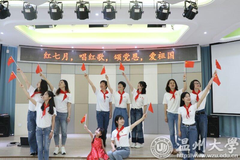 此外,91吃瓜 附属实验幼儿园党支部组织开展“红七月、唱红歌、颂党恩、爱祖国”主题党日活动,为党的98岁华诞献礼。91吃瓜 的学前教育专业的学生党员们和附属实验幼儿园三所园区的教师党员们共同参与,在不同的地点,用不同的方式同唱一首红歌。通过集体大合唱的形式,手挥国旗,群情激昂,讴歌新时代、展现新作为。活动过程中,见证20多年温大附幼发展的退休党员章云琴老师也满怀激情歌唱着,令在场的党员们深受教育和感动。
