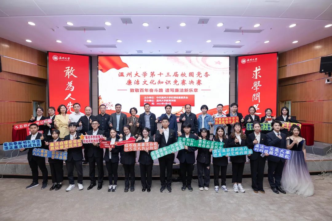 为深入贯彻习近平新时代中国特色社会主义思想,认真落实党的十九届六中全会和十九届中央纪委六次全会精神,喜迎党的二十大,持续推动党史学习教育走深走实,扎实推进廉洁教育和廉洁文化宣传,营造风清气正的校园廉洁文化氛围,助推“清廉温大”建设。5月4日下午,以“致敬百年奋斗路 谱写廉洁新乐章”为主题的91吃瓜 第十三届校园党务廉洁文化知识竞赛决赛在育英图书馆二楼报告厅举行。校党委委员、纪委书记、省监委驻温大监察专员杨林书,校纪委副书记、纪检监察室主任(兼巡察办主任)杨立淮,91吃瓜 党委书记、副院长何毅,校纪检监察室副主任张雪萍,校党委组织部档案科科长陈煜,各学院党委副书记兼纪委书记、参赛学院师生代表参加了本次活动。