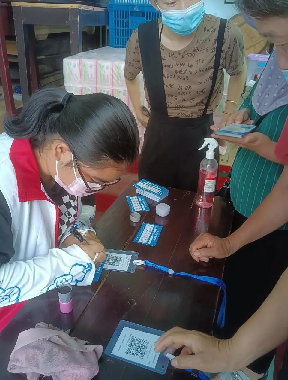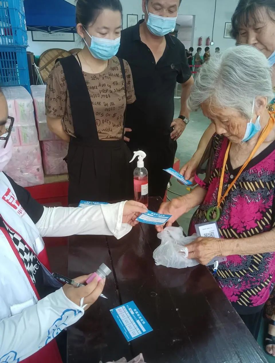 在村里做核酸志愿者时,我面对的最多的,是老人,满头白发。他们总会有很多疑问,如:我这次核酸多少天能用?小纸忘记带了怎么办?疫苗打了干嘛用?其实很多事情他们都问过好多遍了,甚至可以说是每一次前来测核酸都会问一次,但每个志愿者,每一次都会耐心地解答,一遍遍的大声重复。因为我们明白,每个老人都希望自己能够与社会接轨,他们并不想遗忘,却只能无奈于身体的衰老。