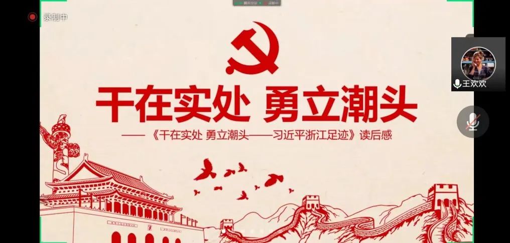 与会人员一同观看视频——浙江省政府党组认真学习《干在实处 勇立潮头——习近平浙江足迹》,王欢欢同志围绕《干在实处勇立潮头——习近平浙江足迹》有关内容进行微党课分享,就习近平总书记卓越的战略远见、真挚的为民情怀和科学的思维方法,深切体悟,深入学习。