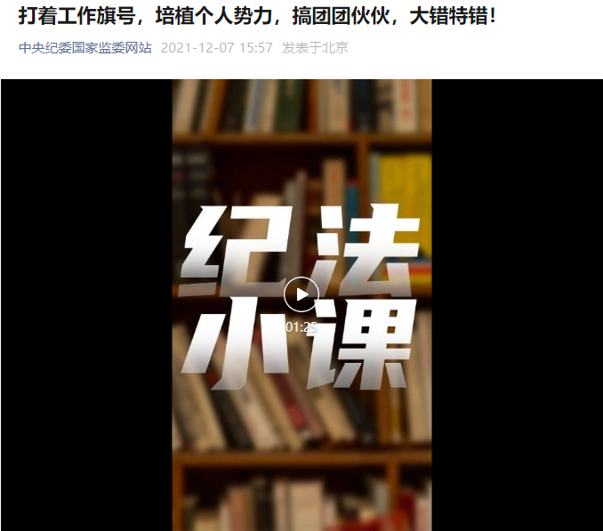 2022年1月13日,学院开展廉政警示教育,组织学院党政领导班子观看廉政微视频《打着工作旗号,培植个人势力,搞团团伙伙,大错特错!》。
