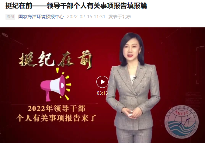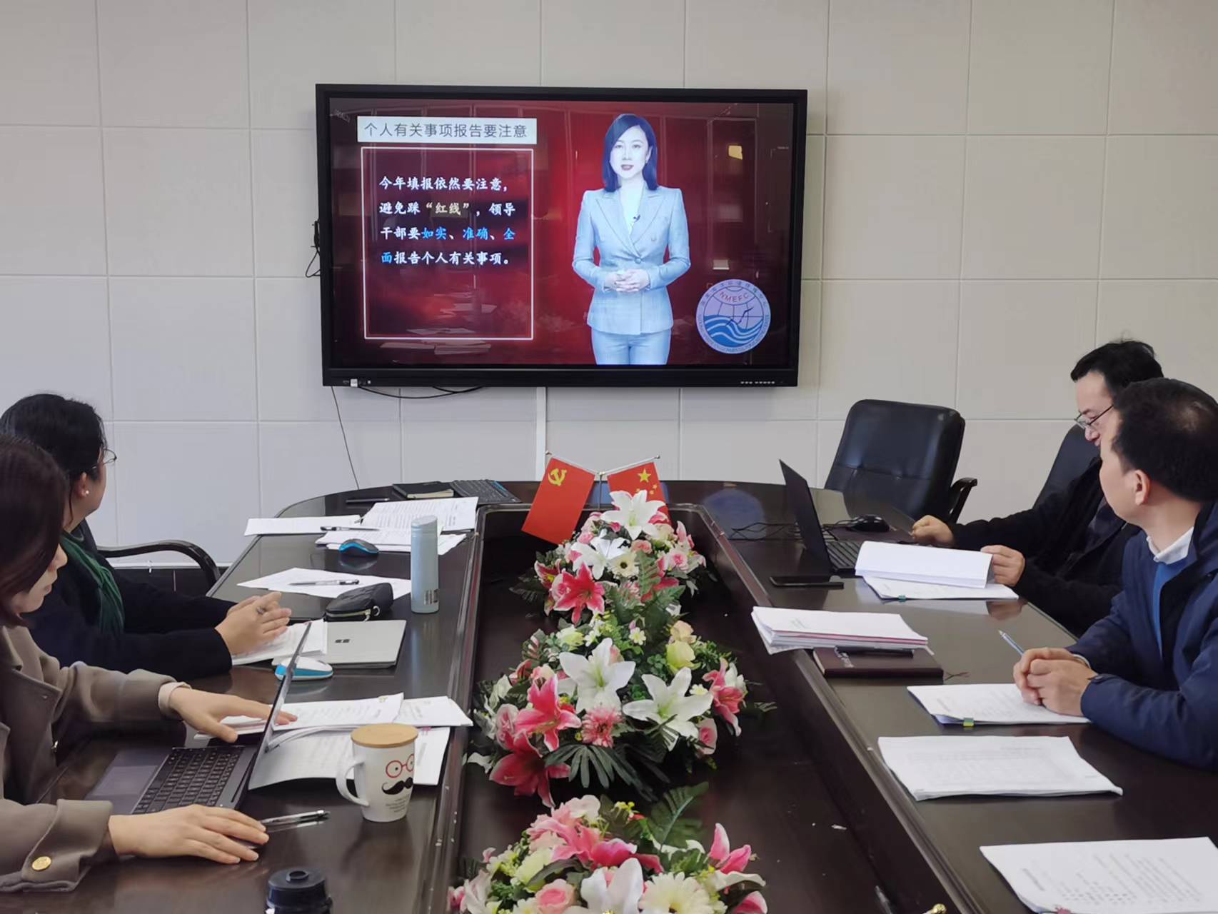 2022年2月28日,学院开展廉政警示教育,组织学院党政领导班子观看廉政微视频《挺纪在前—领导干部个人有关事项报告填报》。