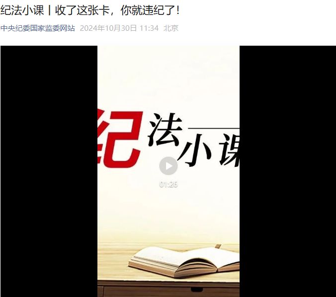 2024年12月2日,学院开展党纪学习教育,组织学院党政领导班子观看微视频《纪法小课丨收了这张卡,你就违纪了!》。