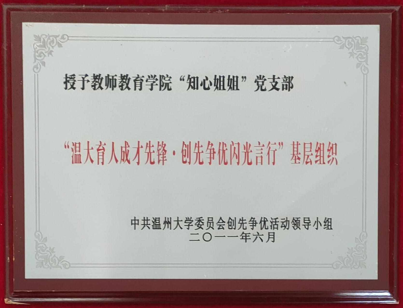 “温大育人成才先锋.创先争优闪光言行”基层组织(知心2011-6)