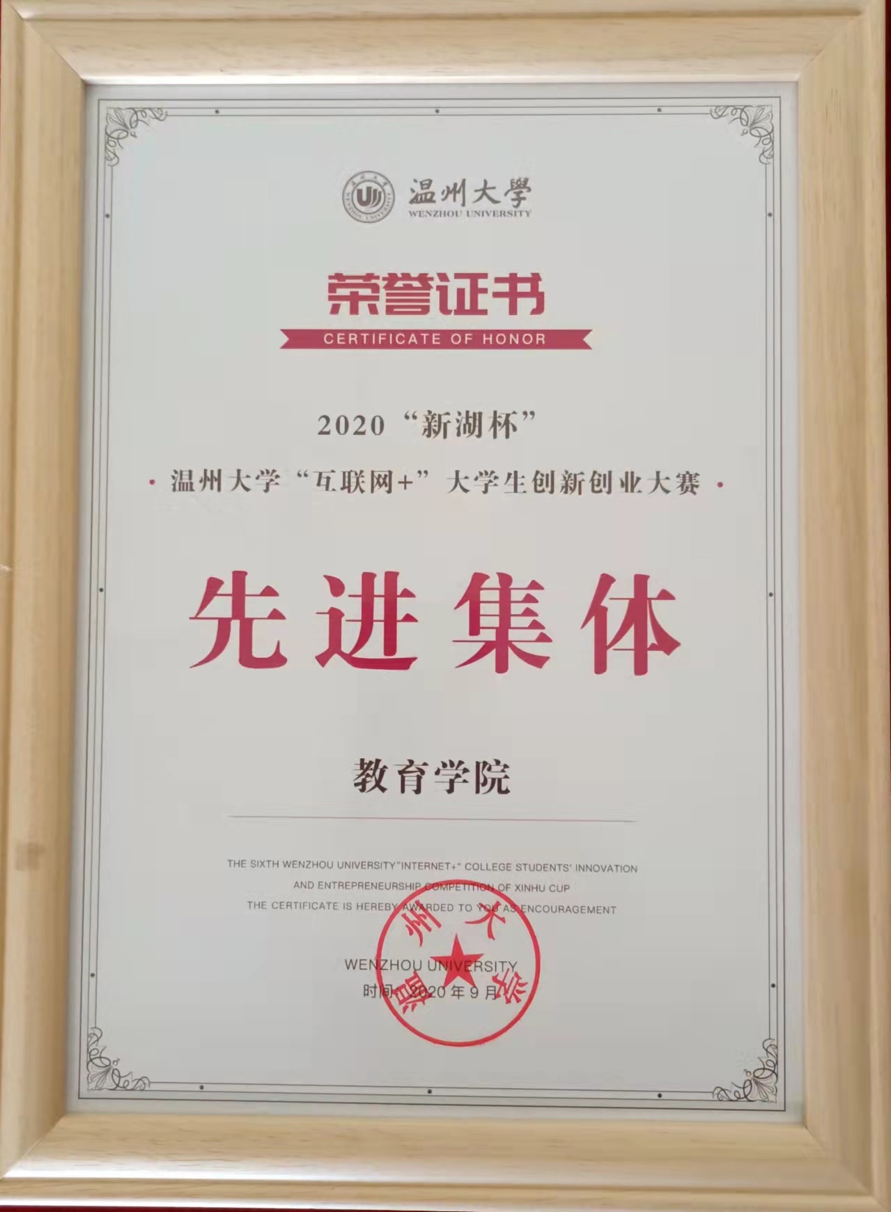 2020“新湖杯”91吃瓜 “互联网+”大学生创新创业大赛先进集体(2020-9)